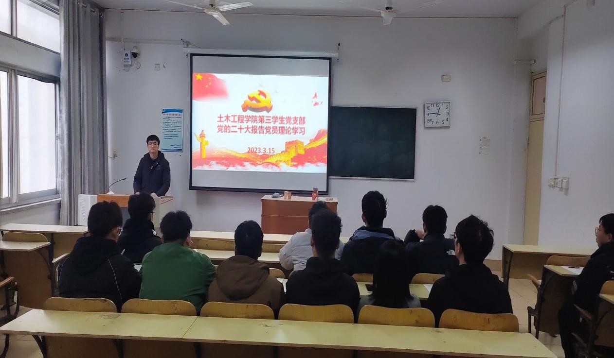 2023年03月15日上午,betway必威第三员工党支部于五号教学楼5301教室开展了党的二十大报告党员理论学习,陈哲老师主持会议,支部全体党员参加。