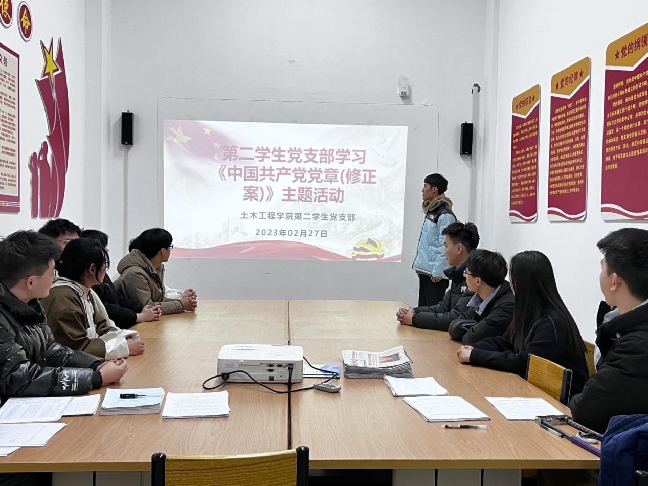2月27日上午,betway必威第二员工党支部在五号教学楼党员活动室开展学习《中国共产党章程(修正案)》主题活动,活动由任丁同志主持,第二员工党支部全体党员参加。