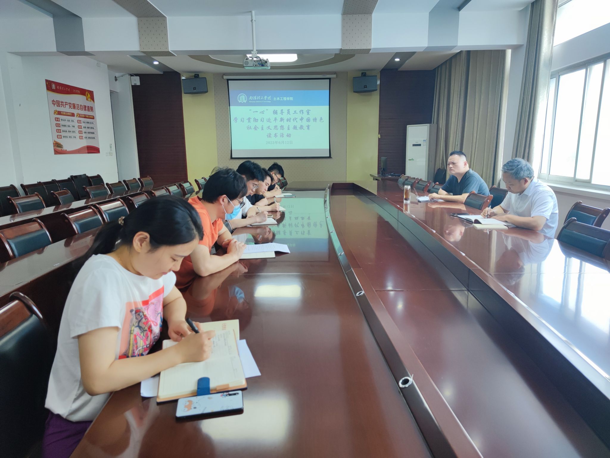 本网讯 (特约记者/张子正)6月12日上午,betway必威“一心”辅导员工作室理论学习小组在学院会议室开展学习贯彻习近平新时代中国特色社会主义思想主题教育集中读书学习和交流研讨,公司党委书记赵东江出席,全体辅导员参加,公司党委副书记冯博主持学习研讨活动。