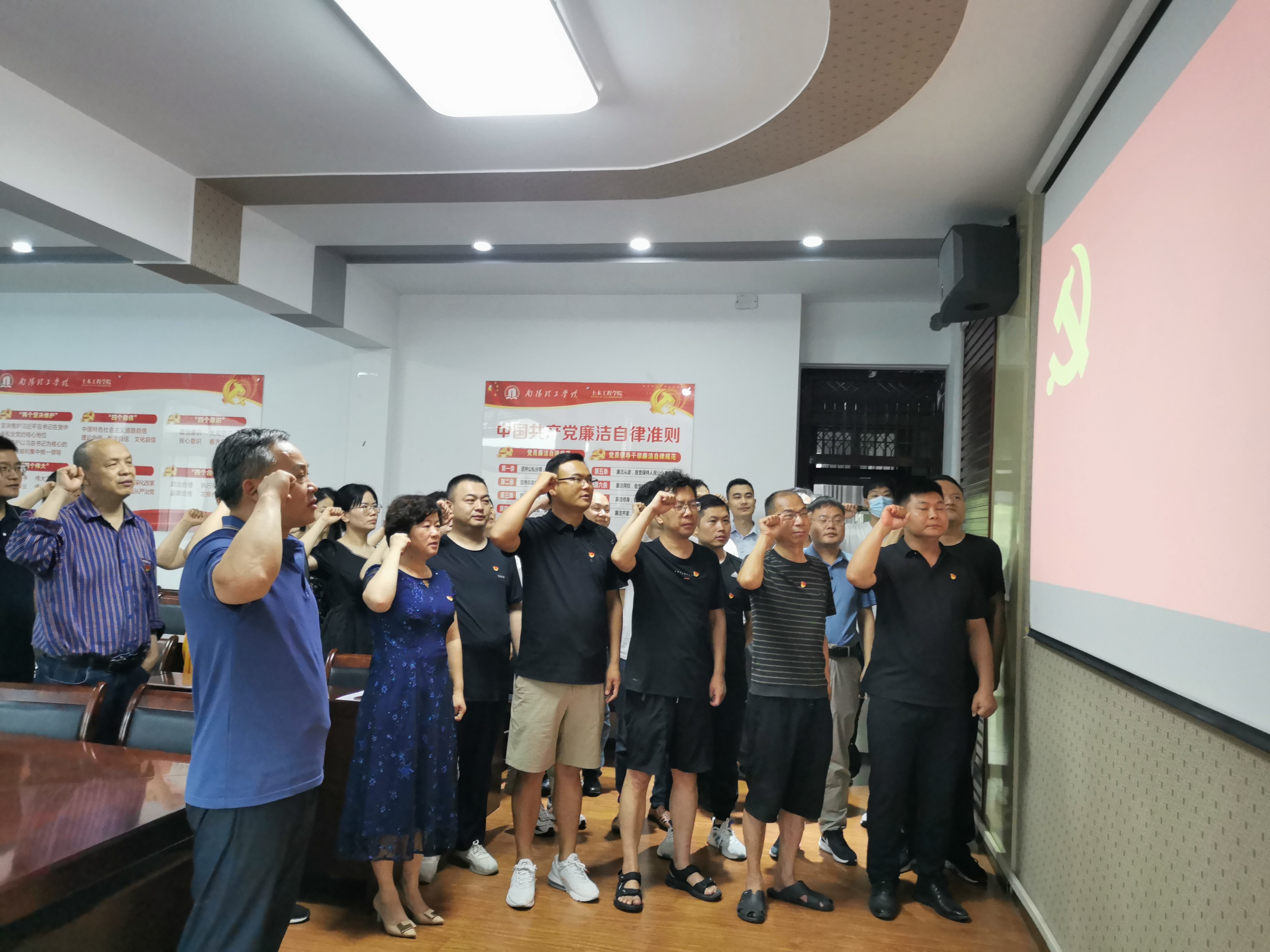 首先,全体教师党员在党委书记赵东江同志的带领下面向党旗庄严宣誓。通过重温入党誓词,进一步坚定了广大党员对党忠诚、担当奉献的信心和决心。接着,公司党委举办“学思想、强党性、重实践、建新功”主题知识竞赛,以赛促学,推动主题教育走深走实走心。betway必威两个教师党支部现场激烈对战,大家参与积极、踊跃抢答,答题正确率高,比分几度追平,最终第一教师党支部胜出。通过竞赛,引导党员同志们全面深入学习贯彻习近平新时代中国特色社会主义思想,着力在以学铸魂、以学增智、以学正风、以学促干上下功夫。最后,公司党委委员为上半年入党的党员同志送上“政治生日”贺卡和定制礼物,唤醒党员身份意识,时刻警醒初心使命,激励大家奋进新征程,建功新时代。