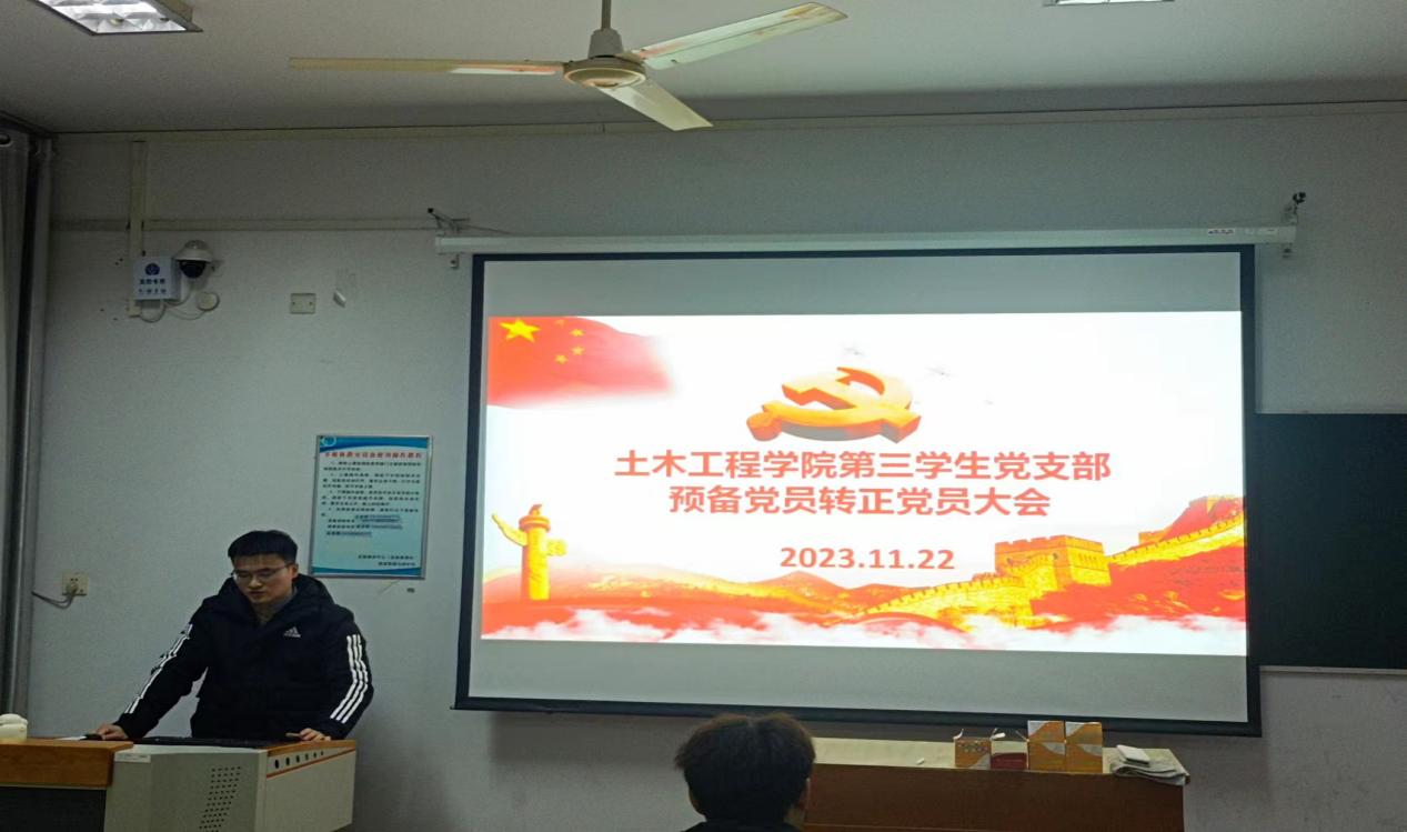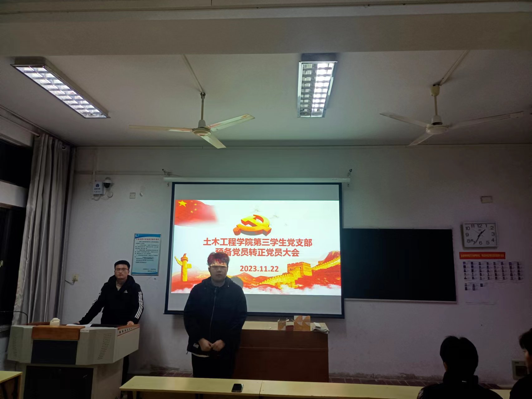本网讯(特约记者/彭景升)2023年12月5日,betway必威第三党支部于5号教学楼 5301教室召开预备党员转正大会,讨论预备党员转正事宜。会议由陈哲同志主持,第三员工党支部全体成员参加。