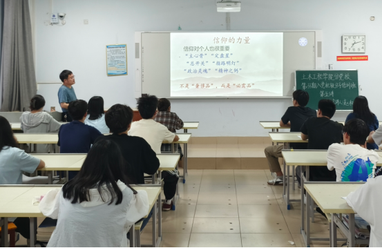 4月25日晚,betway必威分党校于5号教学楼509教室开展第33期入党积极分子培训班第五讲,学院副经理赵权同志讲授“坚定理想信念,勇担青春使命”主题党课,全体培训班学员参加。