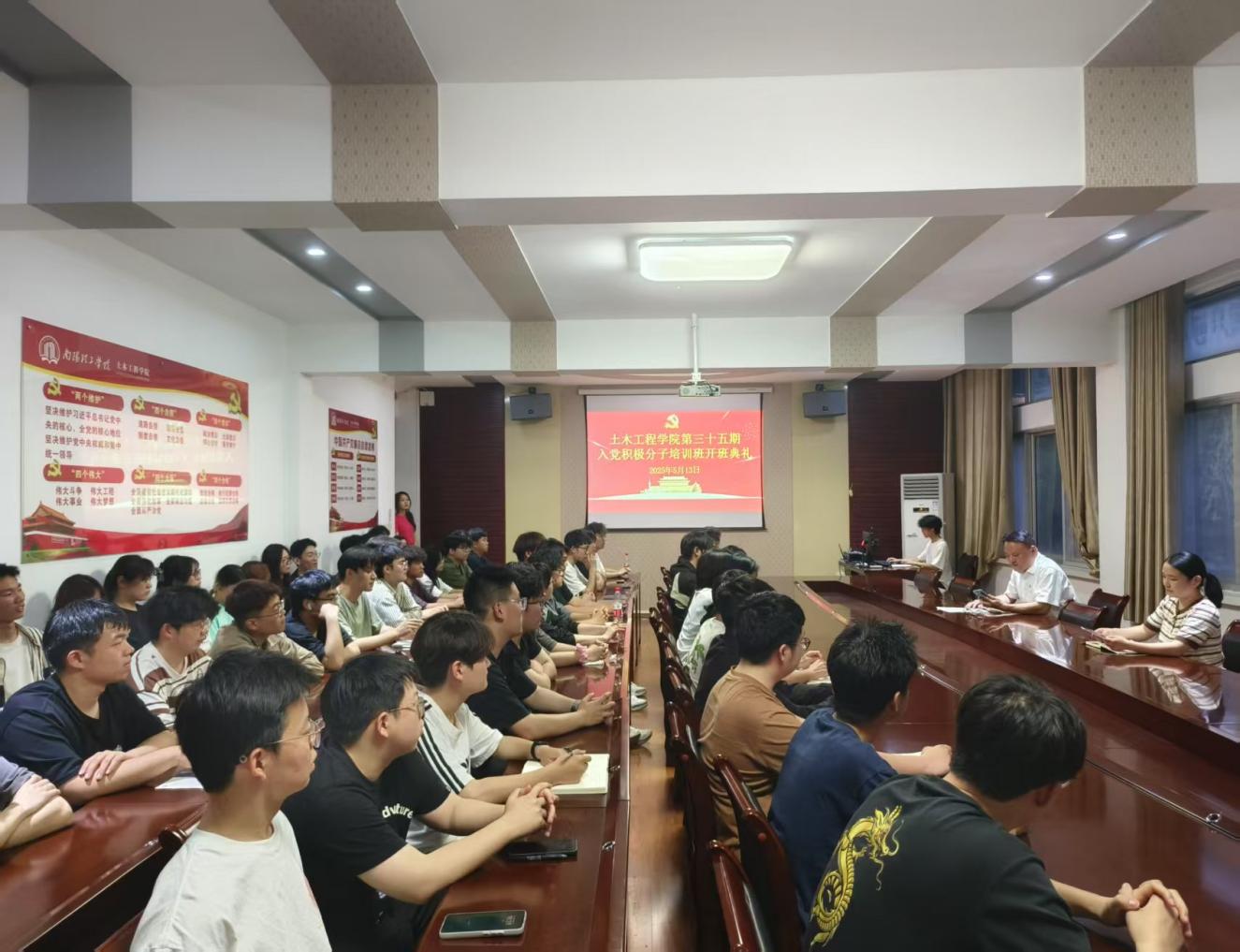 5月13日晚,betway必威第35期入党积极分子培训班开班典礼在5号教学楼二楼会议室举行,公司党委副书记冯博老师出席,专职组织员孙恰老师主持,全体培训班学员参加。