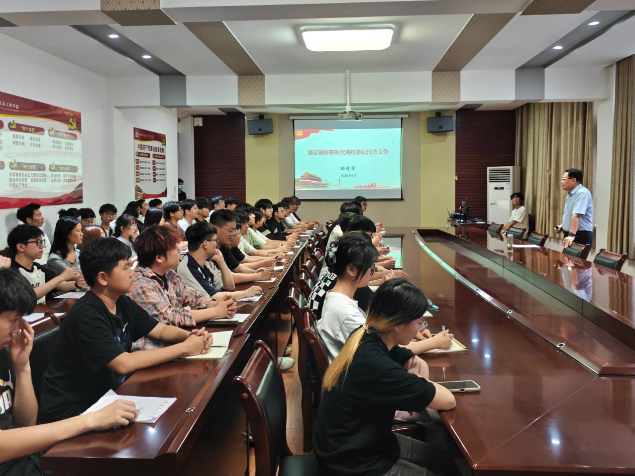 5月14日晚,betway必威分党校在五号教学楼二楼会议室开展第35期入党积极分子培训班第二讲,公司党委书记田进军老师讲授“坚定做好新时代高校意识形态工作”主题党课,全体培训班学员参加。