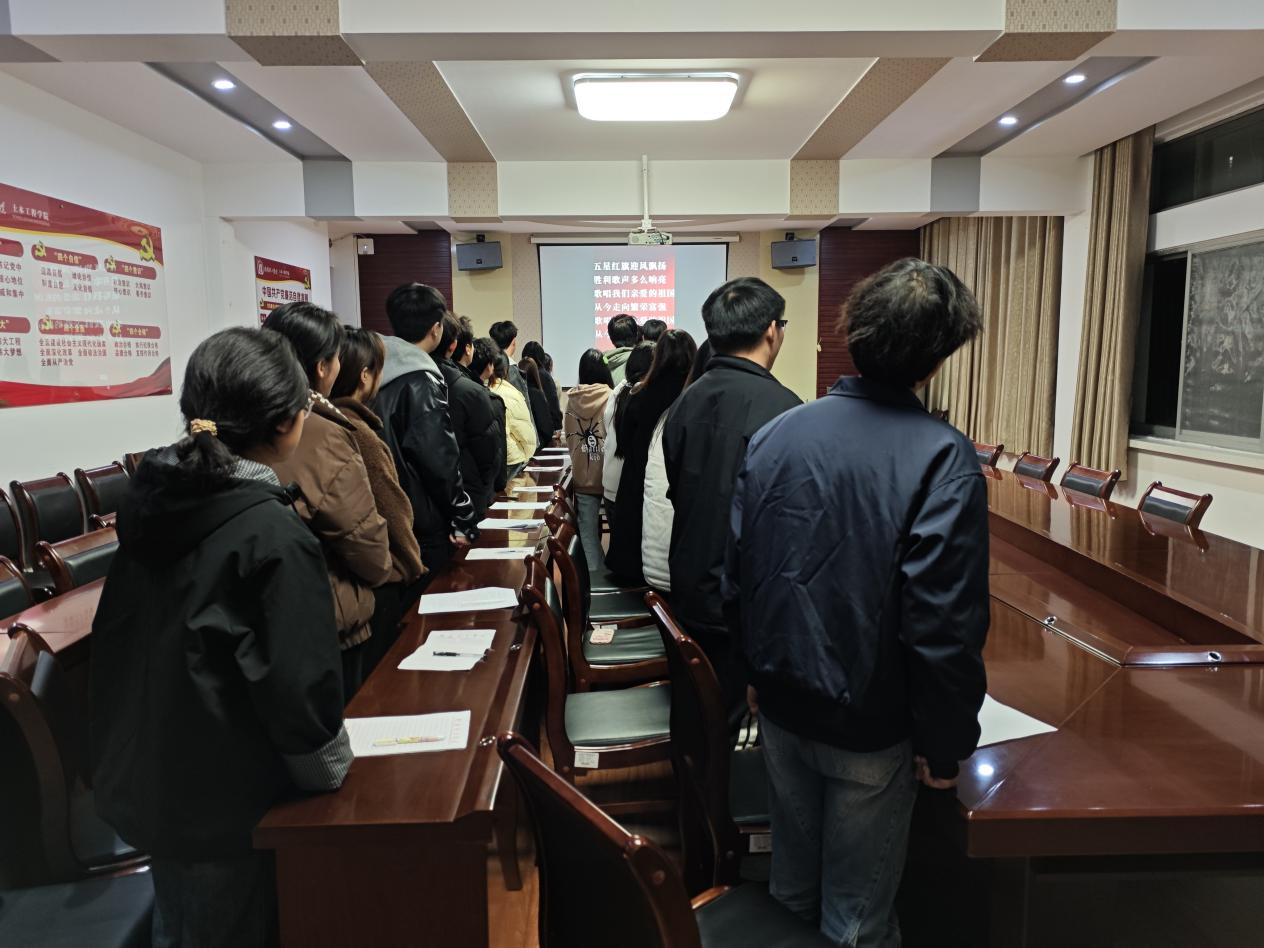 11月12日晚,betway必威分党校于五号教学楼二楼会议室组织第36期入党积极分子观看红色电影并演唱红歌,全体培训班学员参加。