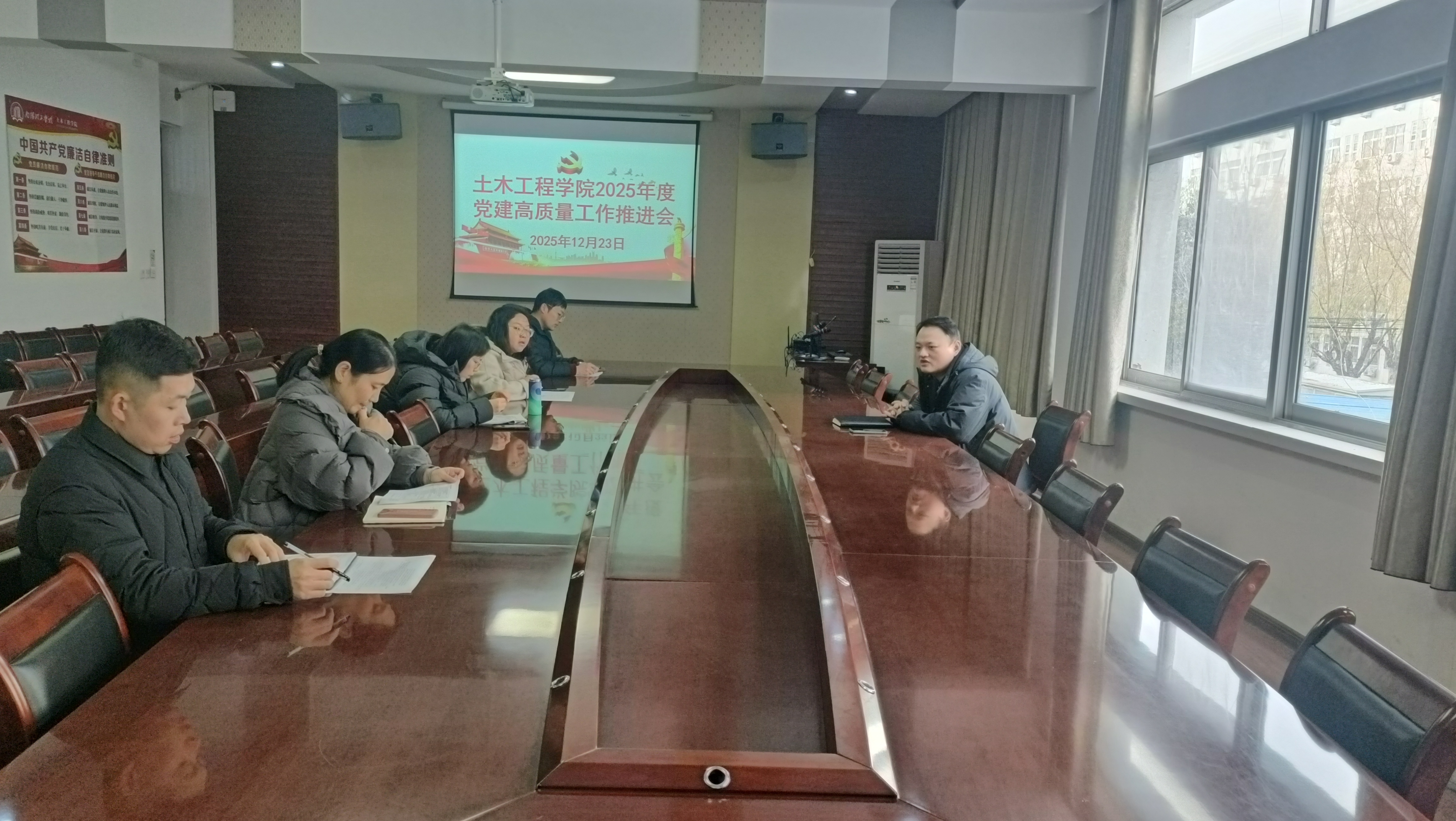 冯博对照集团《2025年度教学单位党建高质量目标量化指标体系》解读各项考核指标内容、评分细则及办法,明确党建工作总结具体要求、任务分工及完成时限。会议还安排了2025年度下半年党建督导工作。