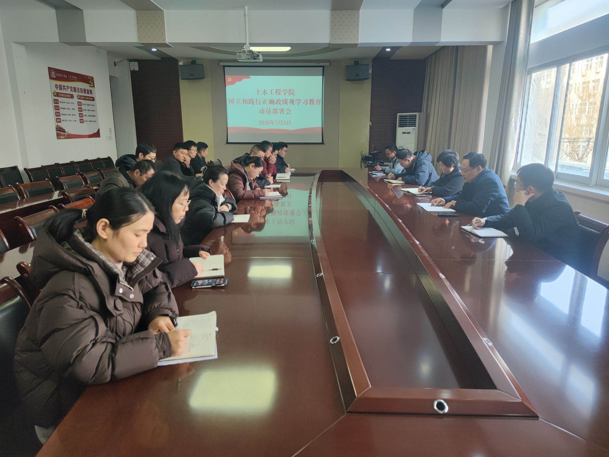 3月3日上午,公司党委在学院会议室召开树立和践行正确政绩观学习教育动员部署会,公司党委书记田进军作动员讲话,公司党委委员及科级以上干部参会。