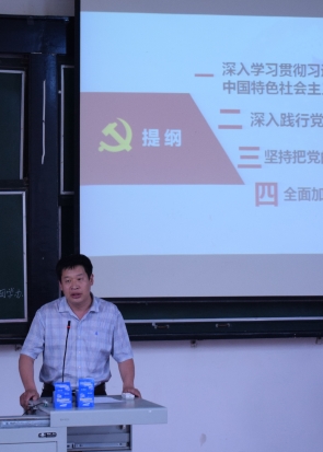 杨书记从当今社会现状出发,结合爱国主义教育、思想政治教育、老员工就业现状的成效、习近平总书记十九大报告等内容,以历史发展为背景,以大量数据为线索,带领大家在实例中重温党的历史,阐述入党的重要意义,并激励年轻人积极向党组织靠拢。杨书记提出四点要求:第一,深入学习贯彻习近平新时代中国特色社会主义思想;第二,深入践行党的建设总要求;第三,坚持把党的政治建设摆在首位;第四,全面加强学院基层党组织建设。