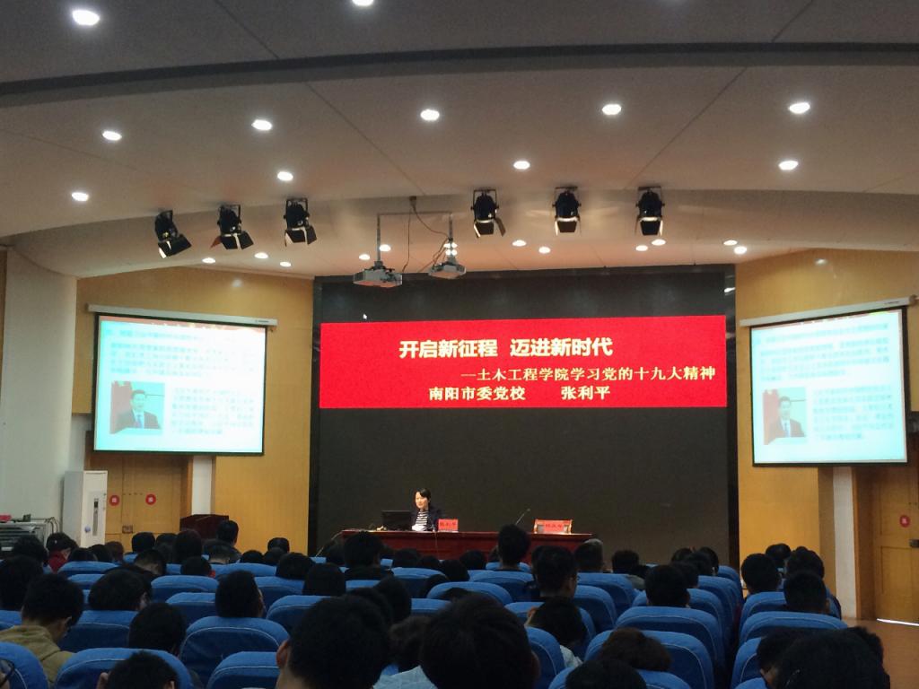 为切实学懂弄通做实党的十九大精神,努力在新时代开启新征程续写新篇章,学习贯彻落实党的十九大精神,betway必威于11月14日下午在领创空间报告厅举办以“开启新征程,迈进新时代——学习党的十九大精神”为主题的专题报告,主讲人为南阳市委党校张利平副教授,betway必威全体教师、员工党员、入党积极分子和部分员工代表参加了本次报告。