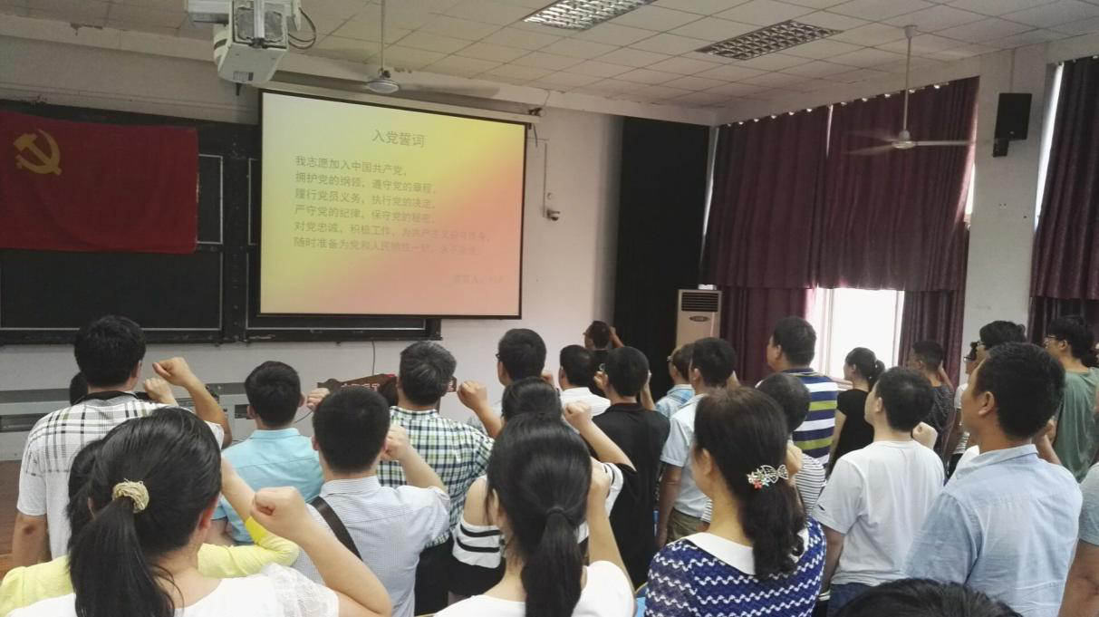 6月28日下午,betway必威在五阶二教室举行入党宣誓仪式暨重温入党誓词活动。betway必威全体教职工党员和员工党员以及入党积极分子代表参加本次活动,活动由副经理赵权同志主持。