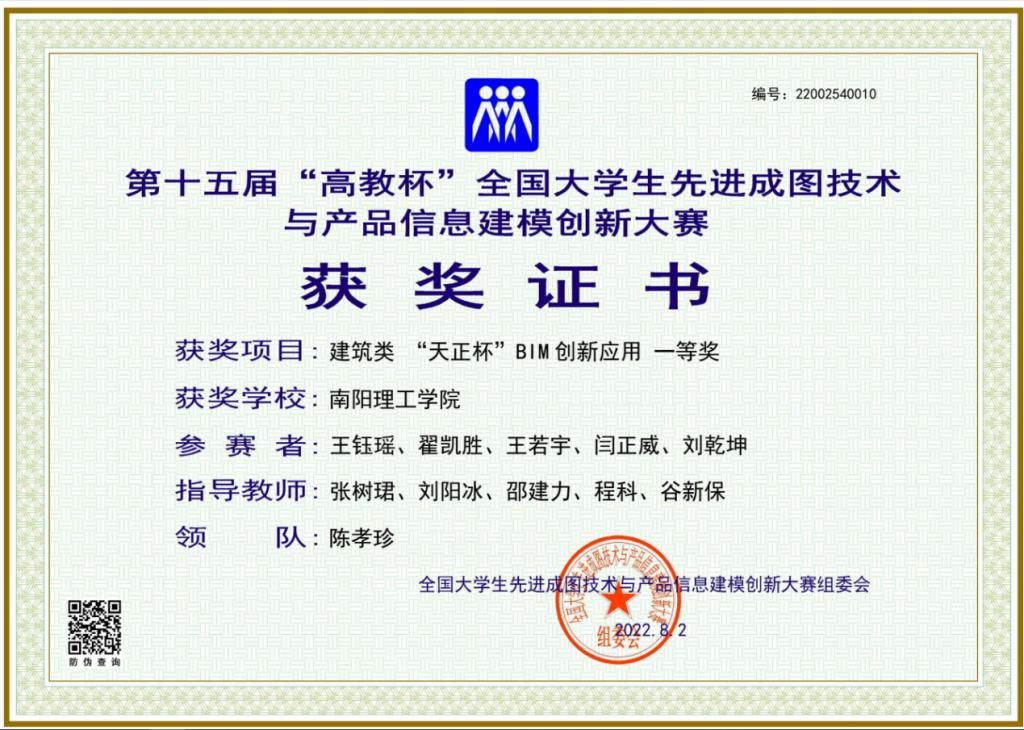 第十五届“高教杯”全国老员工先进成图技术与产品信息建模创新大赛全国总决赛在江苏大学落下帷幕。公司betway必威与建筑学院员工组成的建筑方向代表队,取得了建筑类团体一等奖1项,建筑类制图基础知识二等奖1项的好成绩。其中,公司学子在指导老师陈孝珍,张树珺,刘阳冰,邵建力,程科,谷新保,李岩,宫赛,李森森等的指导下,认真备赛,历经校赛、省赛和国赛三个阶段,荣获了建筑类“天正杯”BIM创新应用一等奖1项;建筑类个人全能二等奖8项,个人全能三等奖3项;道桥类个人全能三等奖1项。