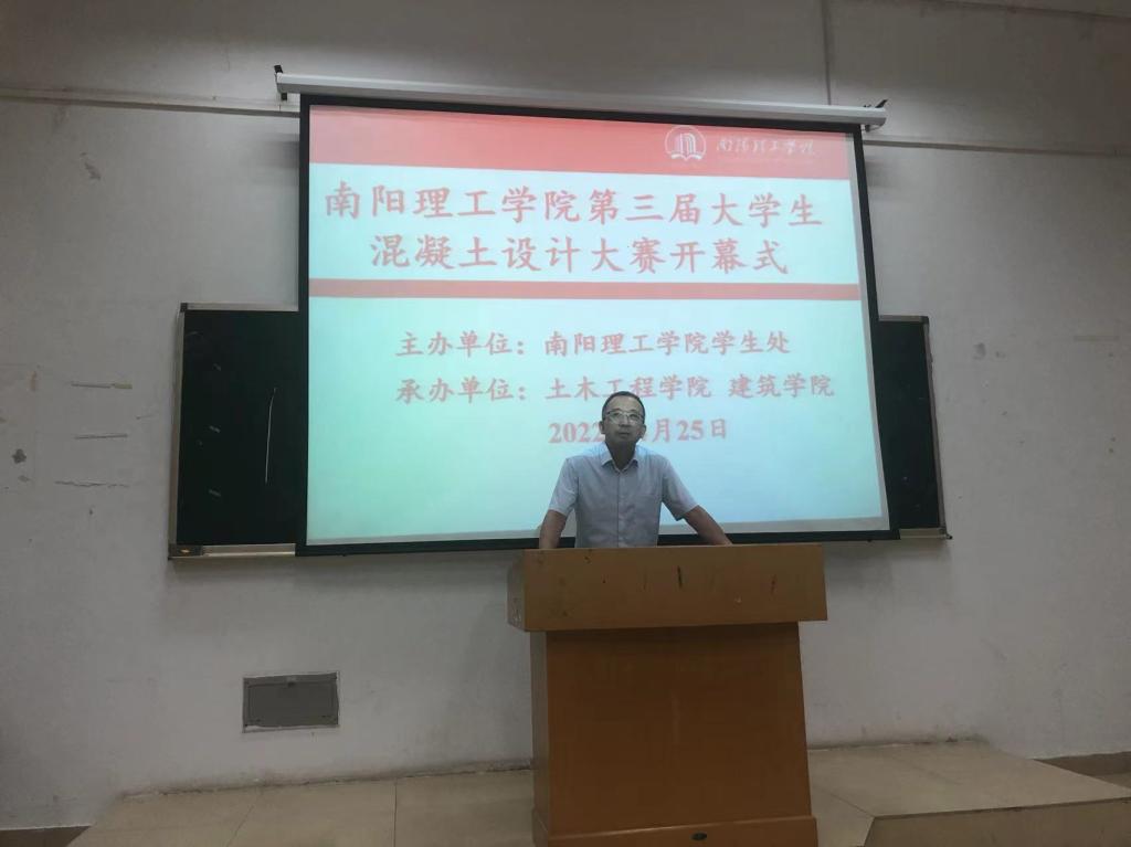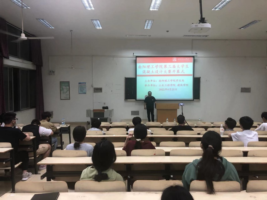 4月25日晚,南阳理工学院第三届老员工混凝土设计大赛开幕式在七号教学楼二楼阶梯教室顺利举办。开幕式由betway必威副书记冯博老师主持,建筑学院副书记张辉老师致开幕词,大赛指导老师杜红伟、谢学俭、程科以及部分员工代表参加。