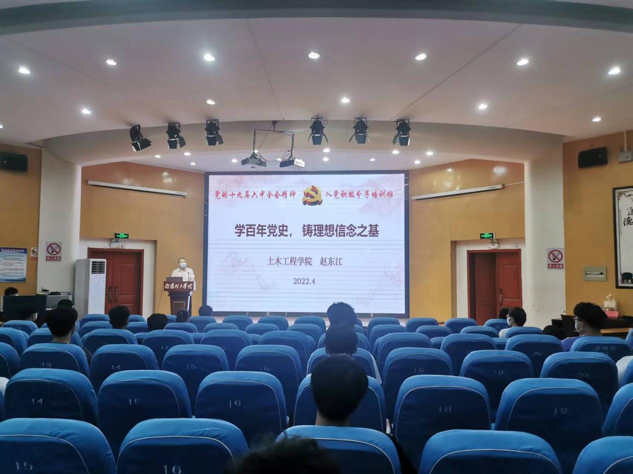 典礼结束后,赵东江同志开展以“学百年党史,铸理想信念之基”为主题的专题党课,从学习党的十九届六中全会精神、筑牢理想信念根基和奋斗大学梦三个方面进行讲述,希望大家不断增强政治素养,用习近平新时代中国特色社会主义思想武装自己,砥砺思想,敢于担当,努力成长为德智体美劳全面发展的中国特色社会主义事业的建设者和接班人。