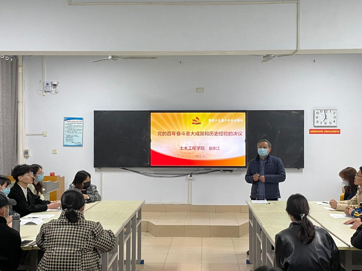赵东江同志从制定《决议》的必要性、党百年奋斗的科学定位、马克思主义中国化的新飞跃、党百年奋斗历史意义和党百年奋斗历史经验等五个方面解读了《党的百年奋斗重大成就和历史经验的决议》。随后,赵书记带领同学们就当今时代潮流和国际大势进行深入交流,同学们积极发言,立志奋力走好第二个百年奋斗目标新的赶考之路。