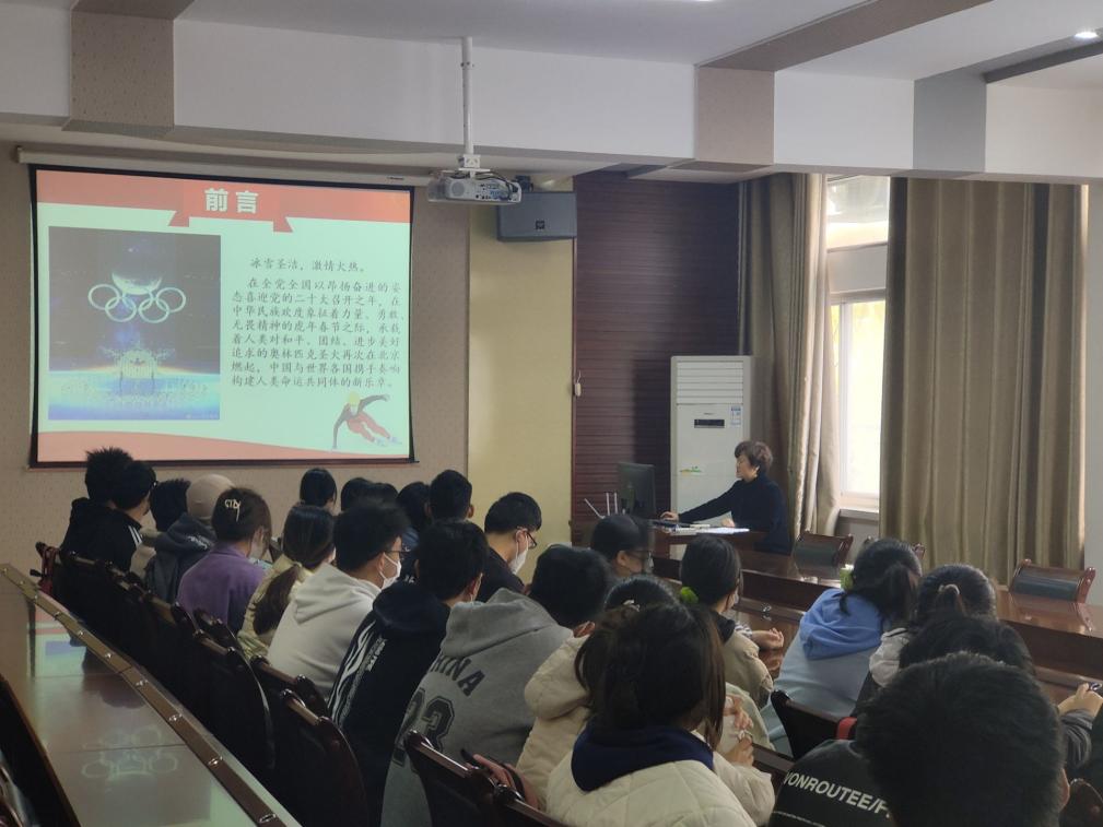 陈孝珍经理以“奋进新征程 一起向未来”为题,由我国今年成功举办的冬季奥运会开始向同学们讲述了我国在奥运上的奋斗史,从不能参加奥运会到成功举办两次奥运会,在习近平新时代中国特色社会主义思想的指引下,成就我们的冰雪梦想,向世界展现拼搏奋斗的中国精神,突显了我国的制度优势,彰显了我国的文化自信,让世界看到了中国的科技力量和产业发展,谱写了我们的奋斗华章。