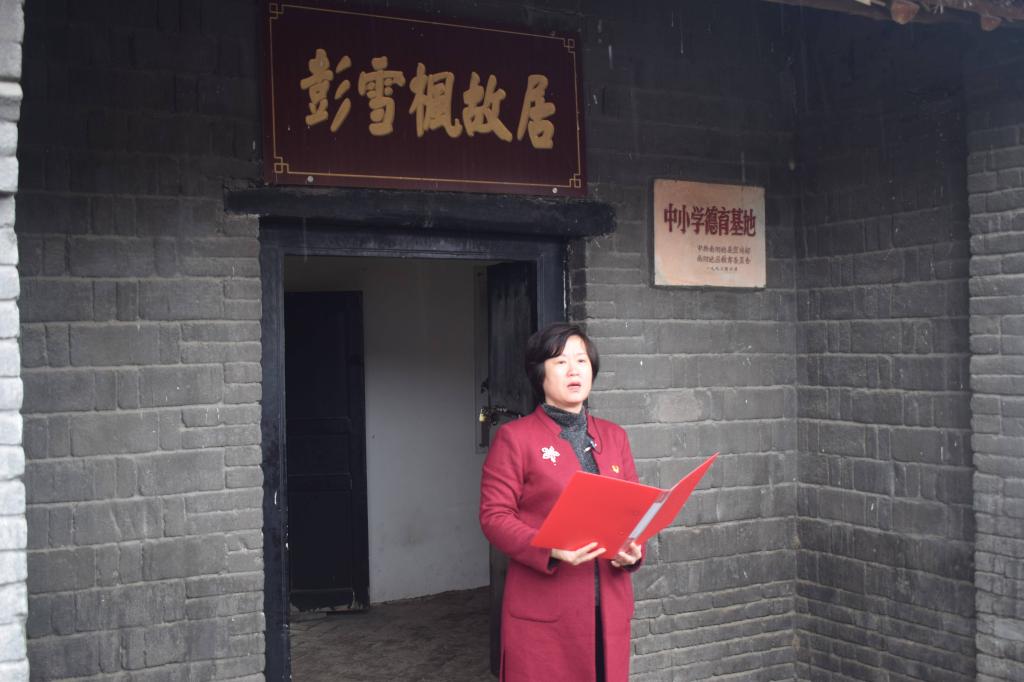 在彭雪枫故居,经理陈孝珍同志为师生党员上了“彭雪枫将军求学之路”微党课,并带领大家参观了彭雪枫将军的故居,学习了革命家彭雪枫志向远大、勤奋好学、百折不挠的精神,爱国爱民、信念坚定的崇高风范,寄予青年学子“继承英烈志,接力绘宏图”的期望。