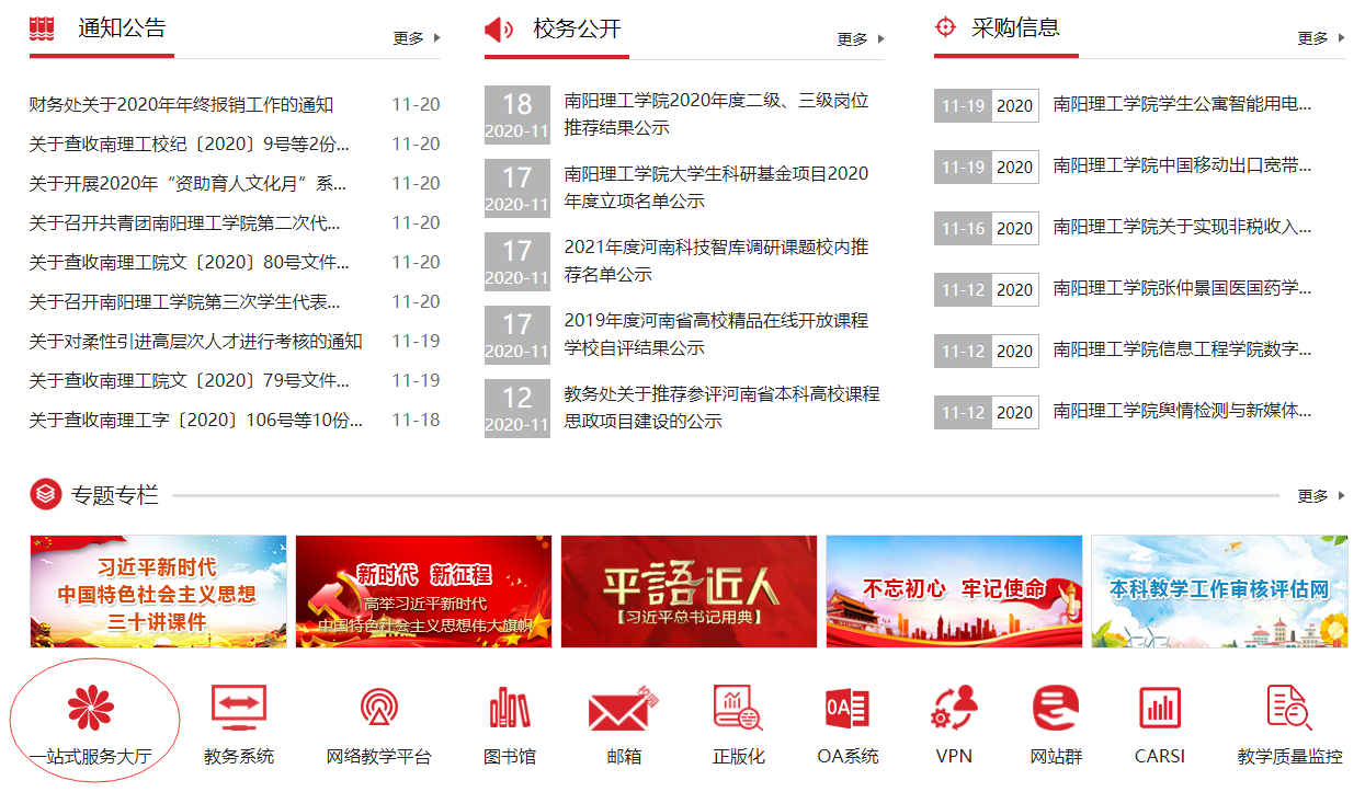 为进一步提高学校信息化服务水平,实现“数据多跑路,师生少跑腿”,学校于2020年初启动了“一站式服务大厅(我i南阳理工)”的建设,从11月30日(星期一)开始进入上线试运行,现将相关事宜通知如下: