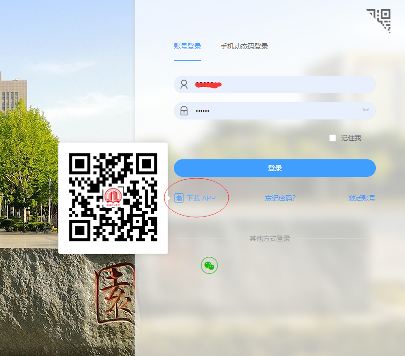 App下载二维码(微信扫描),或者登陆电脑端的登陆页扫描,或者在集团首页右下方扫二维码“我i南阳理工”,账号密码同电脑端。