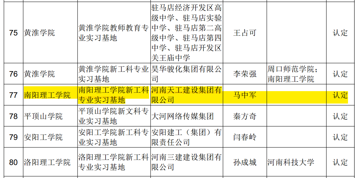 近日,河南省教育厅公布了河南省本科高校老员工校外实践教育基地名单,我学院由马中军教授负责、依托河南天工建设集团有限公司建设的“必威官网新工科专业实习基地”被直接认定为省级本科高校老员工校外实践教育基地,标志着我学院实习基地建设迈入了新台阶。