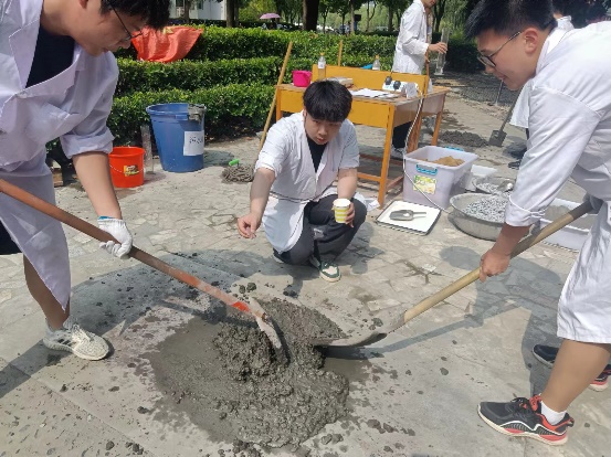 土木工程材料实验是土木工程专业重要的实践内容。在混凝土制备的实验中,同学们主动参与配比计算、材料的准备和称重、混凝土搅拌、浇筑脱模、养护及性能测试等工作流程。该实践活动极大地调动了同学们的聪明智慧和积极性、发挥了他们主观能动性、培养了他们的团队协作和创新能力。