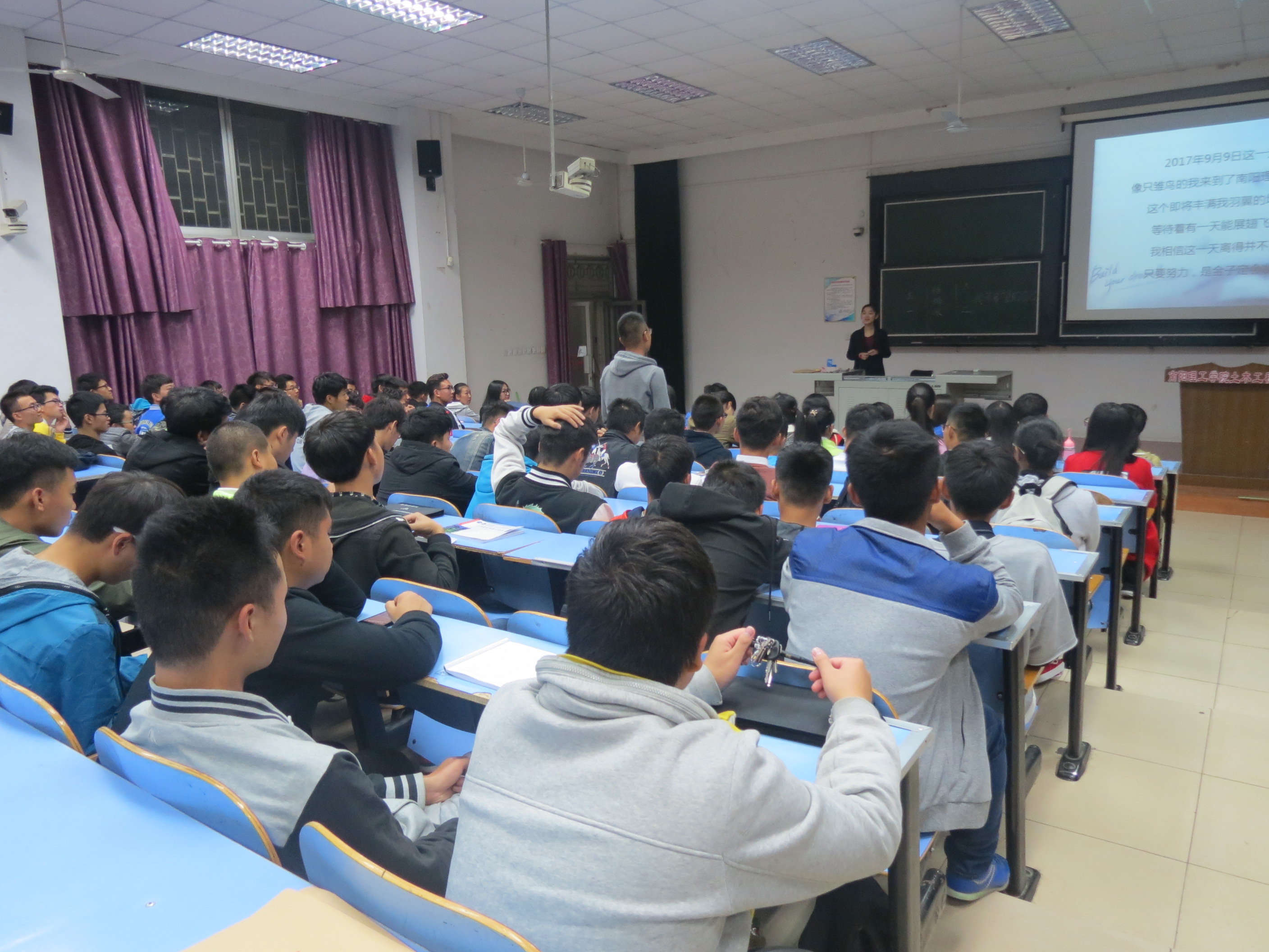 讲座中,任老师为同学们提出以下几点建议:1、同学们在大学要养成良好的生活习惯、爱好和性格等。2、员工们从大一开始要对求职有所了解,同时内心要强大、阳光和丰富。3、要克服自身的惰性,多去图书馆和自习室学习。整场讲座,同学们认真聆听,积极与老师互动并记下笔记。讲座最后,任老师提到近几个月网络诈骗事件逐渐增多,告诫同学们要提高警惕,小心网络诈骗。