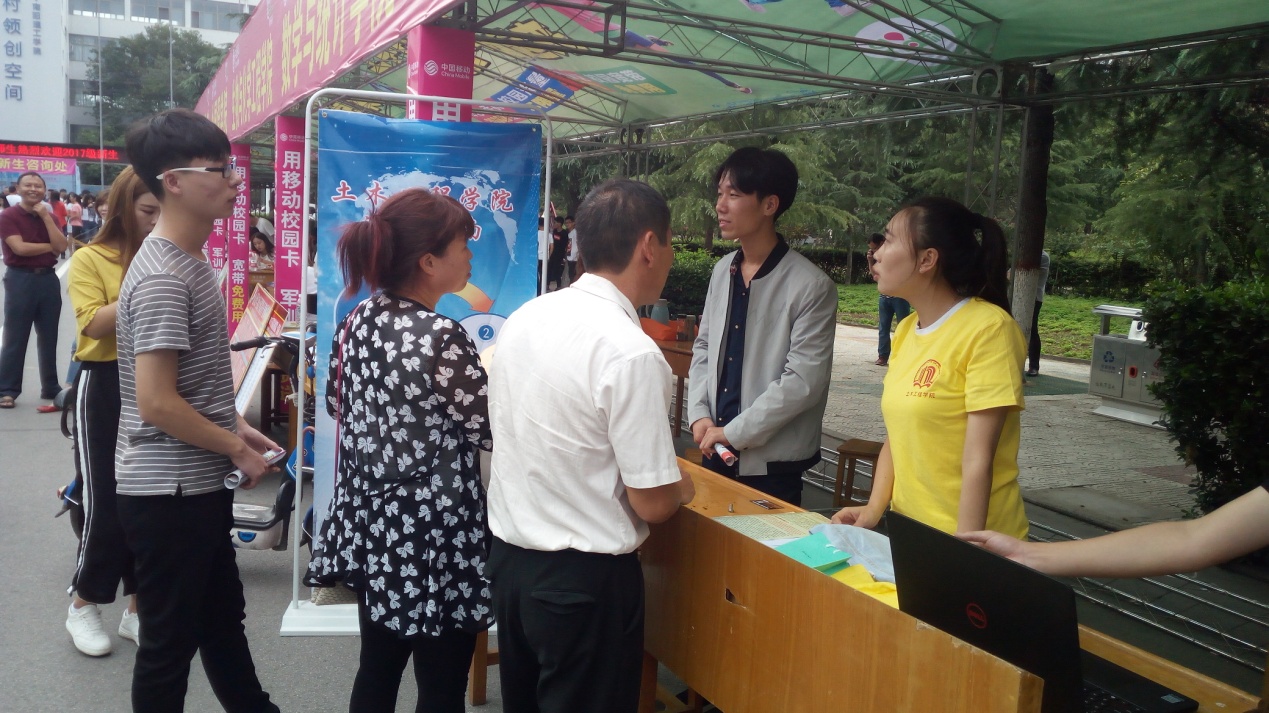 9月9日,准备已久的迎新工作正式拉开帷幕。虽然天气有些阴沉,但是迎新点工作人员的热情丝毫没有减弱,早早就在迎新摊位准备。公司党委书记杨庆年、党委副书记任朝斌、2017级辅导员任寰老师早上八点来到迎新接待站,和学长团成员、员工会干部等所组成的志愿者们一起迎接新生的到来。