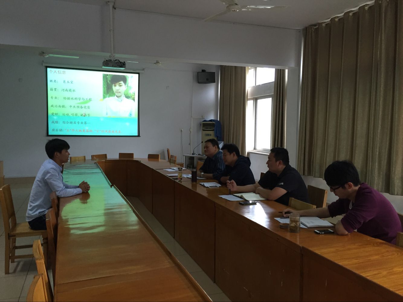 奖学金评定之前,先由到场参加评定的四位同学依次抽签,确定答辩顺序。本次评定分为两个流程,先由参评同学展示PPT并进行演讲,再由各位老师进行面试提问。