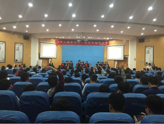 经过初赛复赛的层层筛选,本次决赛共有六支团队脱颖而出。赛前,陈孝珍老师为本次比赛做出了精彩致辞。比赛分为三个环节:必答题环节中,各组选手从容应对,认真作答,建工班的申华以不紧不慢的答题方式的获得最高分得到同学们的赞赏;抢答题环节中,比赛异常激烈,选手们争相按下抢答器抢答,全场气氛达到高潮;风险题环节中,第一小组勇于挑战高难度高分题,比分稳增,获得现场观众阵阵掌声。在比赛期间,还穿插了观众互动环节,台下观众争相回答问题,缓解了紧张气氛。最后,冯博老师对选手的表现做出肯定,并对比赛以后各选手的发展做出希冀。