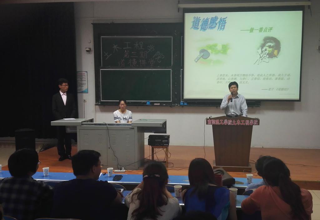 (新闻中心记者:徐博 龚洪苇 崔钰 报道)为加强全院同学的思想道德建设工作,努力提高同学们的思想道德水平和个人文明素质。5月12日,由公司学习部主办的道德讲堂在五阶二成功举办,出席本次活动的有公司党总支书记赵彦普、经理司马玉州、副经理杨庆年、betway必威全体教师以及14级部分员工代表。