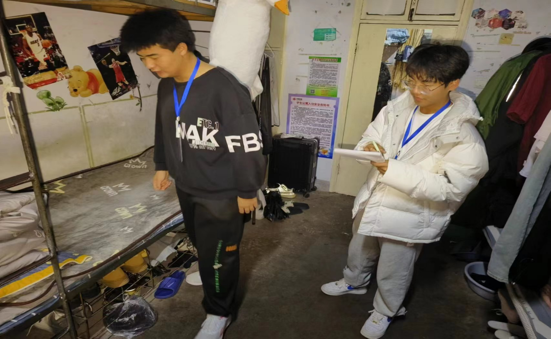 活动中,员工工作人员走访教室和宿舍,对室内地面、物品摆放和卫生死角等进行检查,重点针对宿舍内的违规使用大功率电器的情况进行详细的检查、记录和监督整改,发现问题及时进行解决,确保同学们有一个安全干净的学习生活环境。