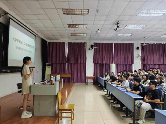 20级工程管理班常苹雨等同学分享了就业经验,详细介绍了如何制作简历、如何准备面试、如何与用人单位沟通等实用技巧。赵浩威等同学分享了考研历程和心得体会,包括如何制定复习计划、如何调整心态、如何应对考试压力等,并针对考研中常见问题提出了解决方法。