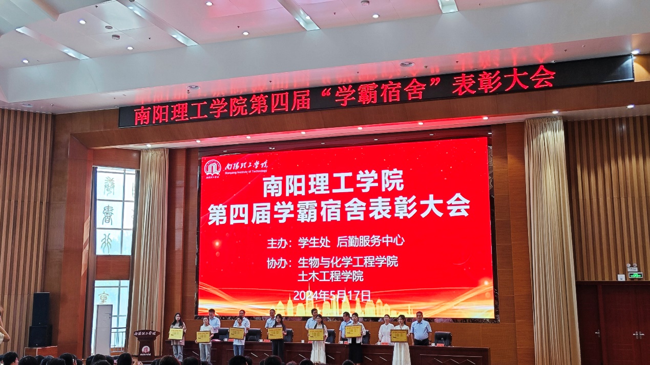 5月17日上午,南阳理工学校在第三报告厅召开第四届“学霸宿舍”表彰大会。公司党委副书记、工会主席董豪,副董事长黄金书出席,员工处、生物与化学工程学院、betway必威、后勤服务中心等单位相关负责人,“学霸宿舍”成员及员工代表参加会议。