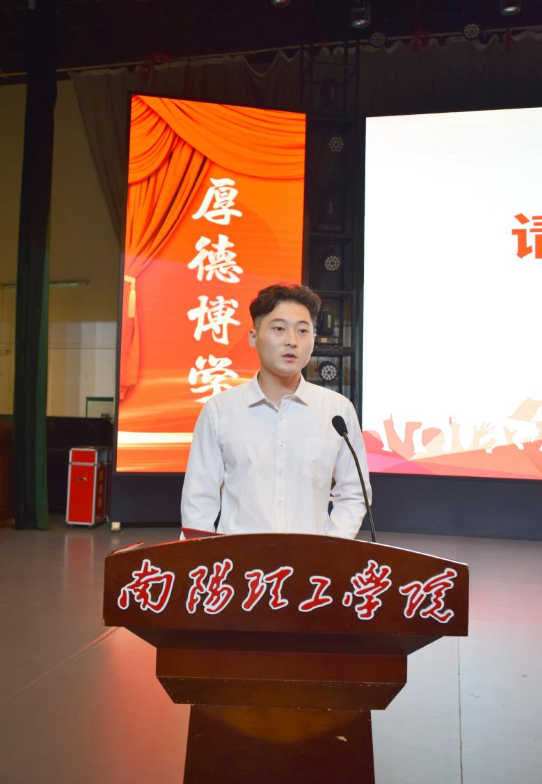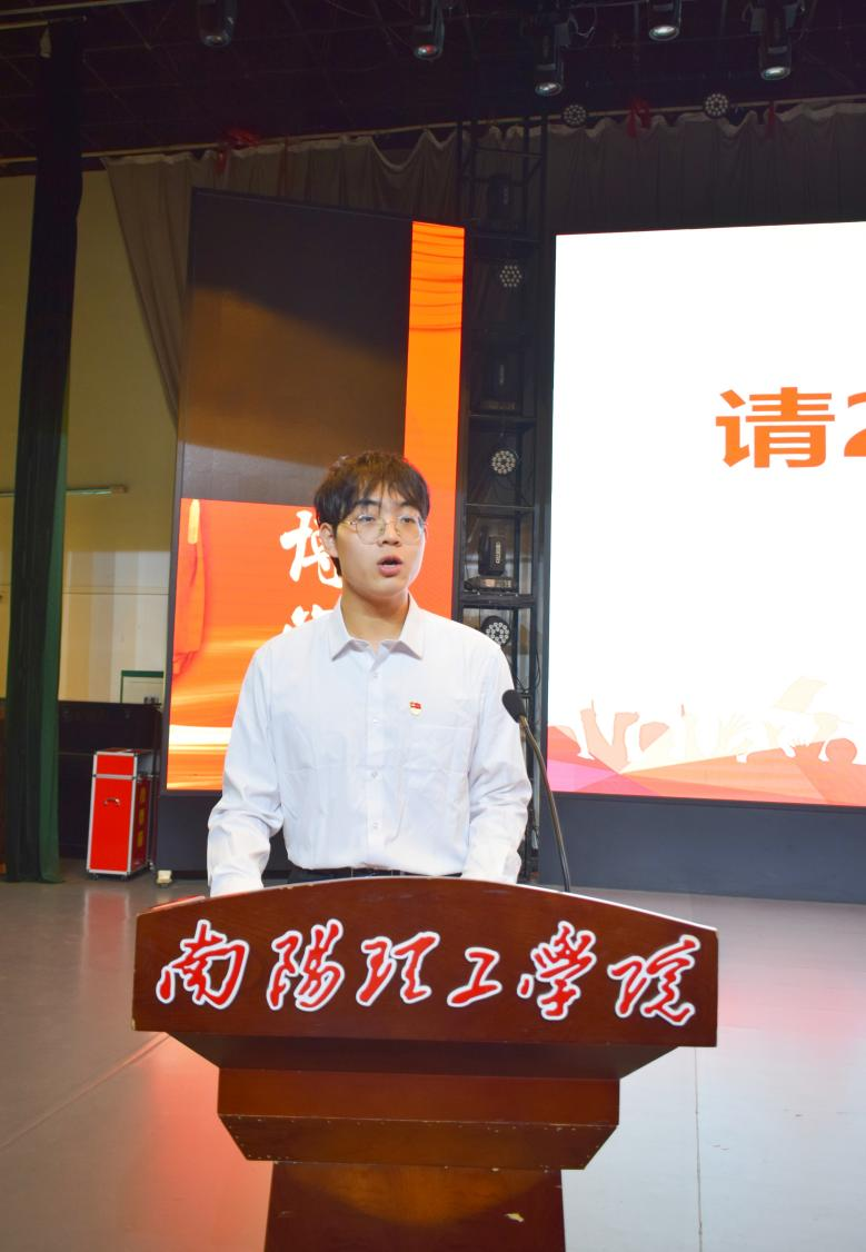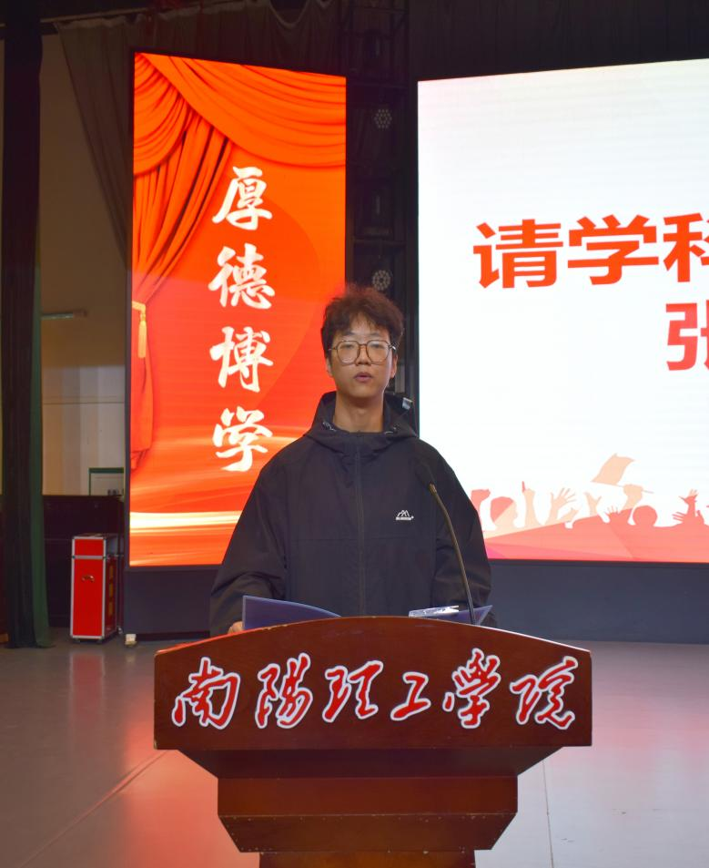 张申源作为学科竞赛获奖员工代表发言,通过讲述自身的学习经验方法以及在学科竞赛中取得的一些成绩,鼓励新生们积极参加学科竞赛,在比赛中超越自己,在挑战中成就梦想。