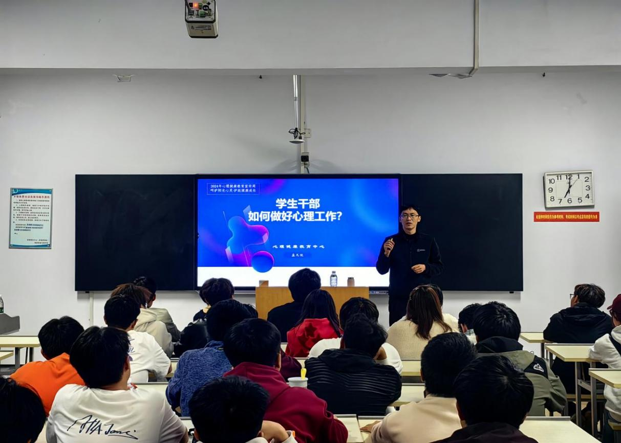 本网讯(特约记者/丁海怡)为了进一步提升员工干部的心理危机识别和沟通调解工作能力,10月24日晚19:00,betway必威在5507教室举办员工干部心理工作培训,心理健康教育中心孟凡锐老师主讲,2024级各班心理委员和宿舍长参加。