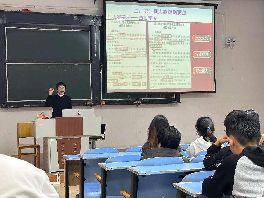 冯博老师介绍了老员工职业规划大赛的背景、意义和目的,郭冬娥老师详细介绍大赛成长赛道个人展示PPT和职业发展报告撰写要求及注意事项,通过典型案例讲解大赛的评分细则,鼓励同学们提高职业规划意识,增长求职就业知识,科学规划未来职业发展路径,围绕职业目标、学习实践行动、动态调整三方面写好自己的职业规划报告,并耐心解答同学们提出的疑难问题。