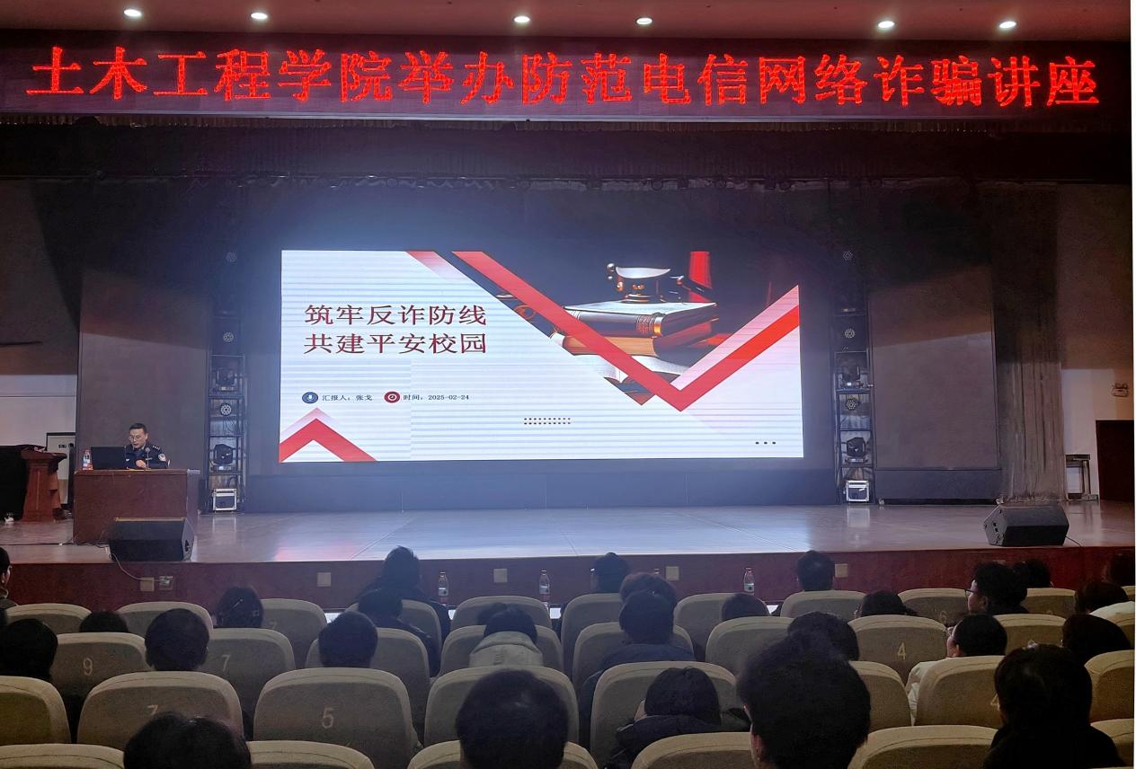 本网讯(特约记者/李珂)为切实增强师生防范电信网络诈骗安全意识,守护校园安全稳定,2月24日晚,betway必威在毕业大厅举办防范电信网络诈骗专题讲座,枣林派出所副所长张戈警官主讲,公司党委书记田进军、副书记冯博、全体辅导员和师生代表600余人参加。