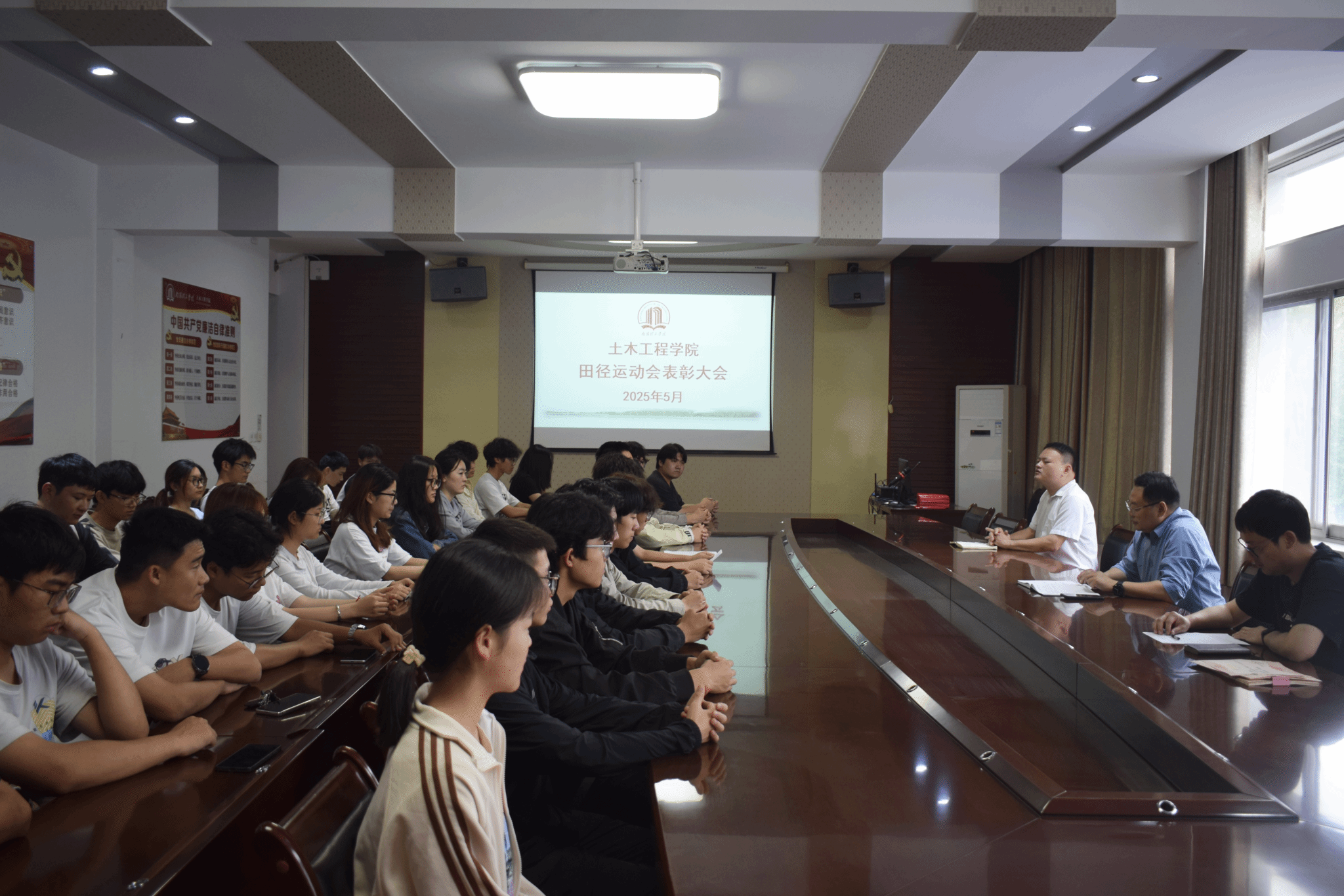 本网讯(特约记者/张子正)5月8日中午,betway必威在5号教学楼二楼会议室举办第二十九届田径运动会表彰会。公司党委书记田进军、党委副书记冯博出席,学工办张子正老师以及全体运动员参加了此次大会。