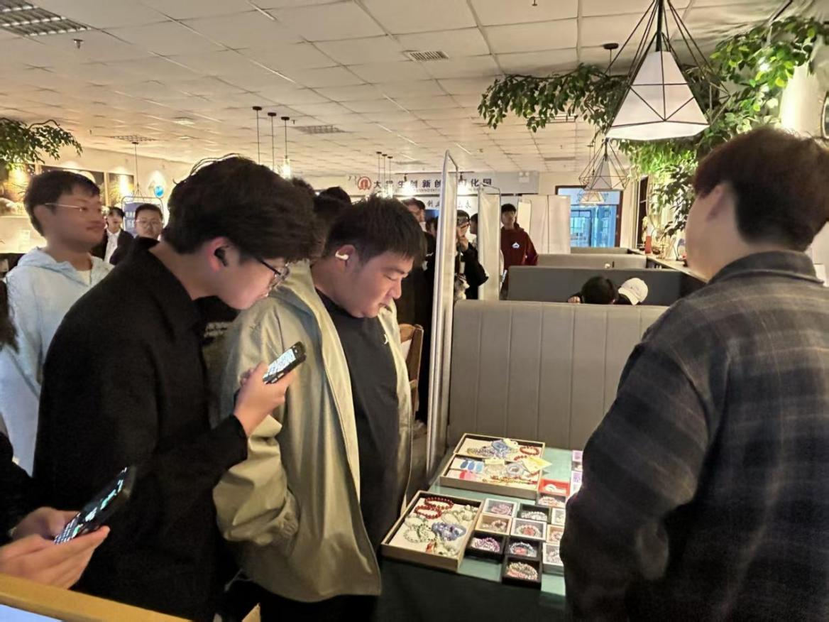 在讲解员的带领下,同学们先后走访了多个特色创业项目展区与工作室。在文创产品展区,精美的手工艺品、创意饰品吸引了大家的目光,同学们驻足讨论,感受创意与商业结合的魅力。
