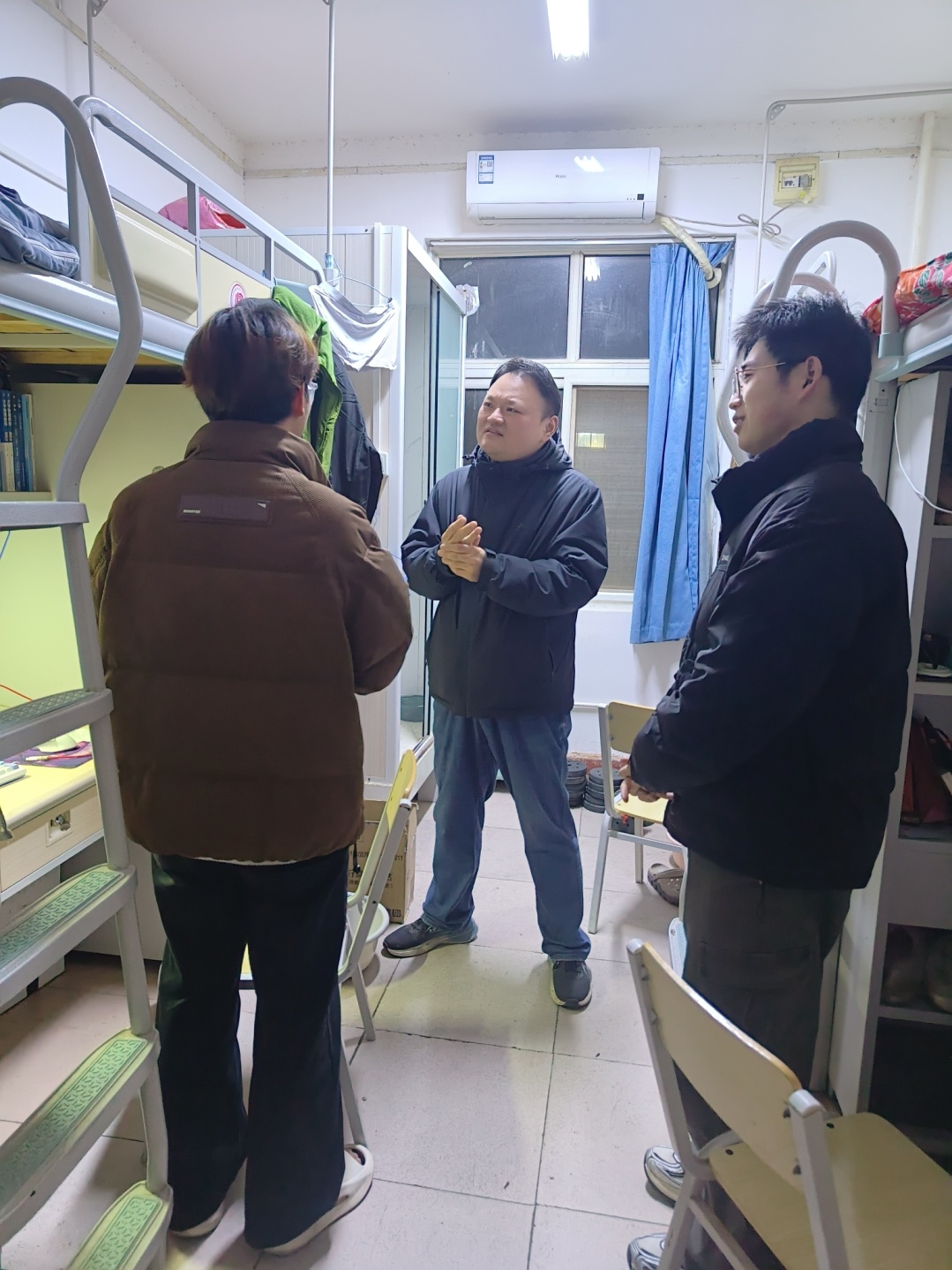3月3日晚,公司党委副书记冯博老师带领辅导员队伍走访员工宿舍,了解同学们住宿和学习情况,检查宿舍安全用电和卫生状况,勉励大家以崭新的精神面貌和充分的学习准备开启新学期新征程。