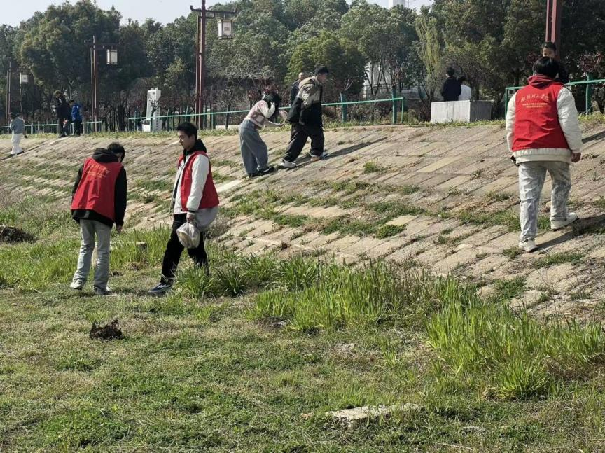 活动前期,学院精心规划组织,志愿者们在活动现场集合整装,明确分工与任务。大家携带垃圾袋、夹子、手套等工具,分组沿白河沿岸有序推进,重点清理河道岸边及水域的塑料瓶、塑料袋、烟头、杂草等垃圾。清理过程中,志愿者们相互配合、分工协作,有的手持夹子仔细捡拾隐蔽处的垃圾,有的用垃圾袋分类收纳清运,有的向沿岸市民宣传河道保护的重要意义,形成了“人人参与、协同发力”的良好氛围。