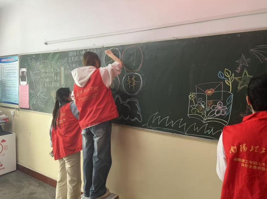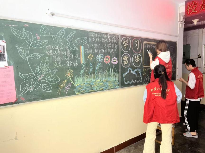 同学们踊跃参与、分工协作,有的搜集雷锋事迹与名言警句,有的精心设计板报版式,有的认真书写绘画,将雷锋同志的感人故事、志愿服务精神、新时代雷锋故事等内容融入板报。色彩鲜明的图案、真挚动人的文字,让一块块板报成为生动的雷锋精神宣传阵地,既展现了同学们的创意与才华,也让雷锋精神更加深入人心。