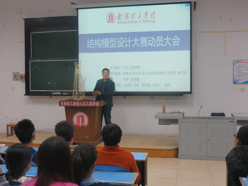 (新闻中心 文/张桓铭 图/张桓铭)3月29日晚,为了使同学们更好的了解结构模型设计竞赛的相关内容,公司于五阶一教室召开了建筑模型竞赛动员大会,由公司老员工综合实训创新中心副主任吴帅涛老师主讲,数百名同学参加了本次大会。 吴老师向大家展示了公司员工在近几年河南省比赛中取得的优异成绩和获奖作品,介绍了本次竞赛的主题、所用到的工具以及符合要求的模型规模。 大会结束后,同学们都表示自己对建筑模型比赛有了更深的理解,在比赛开始前会努力学习相关知识,发挥自己的创造力,做出优秀模型,力争取得好成绩。