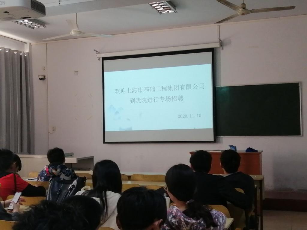 11月10日,上海市基础工程集团有限公司于betway必威5318教室召开专场宣讲会,部分应届毕业生参加。