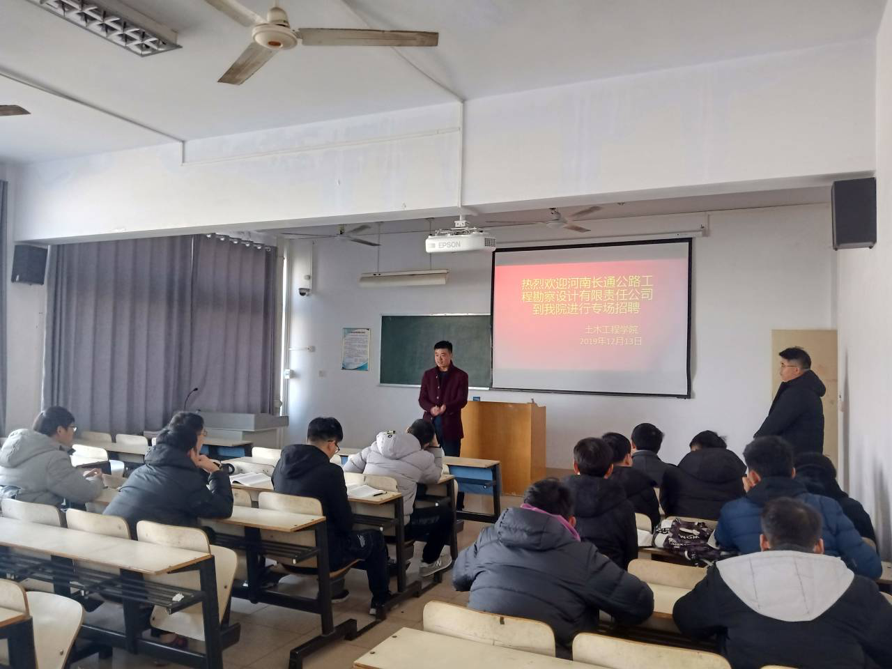 (就业指导中心 文/蔚正豪) 为提高公司毕业生签约与就业率,搭建企业与员工面对面交流平台,12月13日,河南长通公路工程勘察设计有限责任公司于公司5508教室召开专场招聘会,公司部分应届毕业生积极参加。