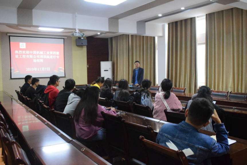 (就业指导中心 文 刘 娟 图/夏雨露)为解决公司毕业生就业难问题,11月7日下午四点,中国机械工业第四建设有限公司在公司二楼会议室成功举办2020年度秋季宣讲招聘会,公司优秀毕业生参加此次会议。