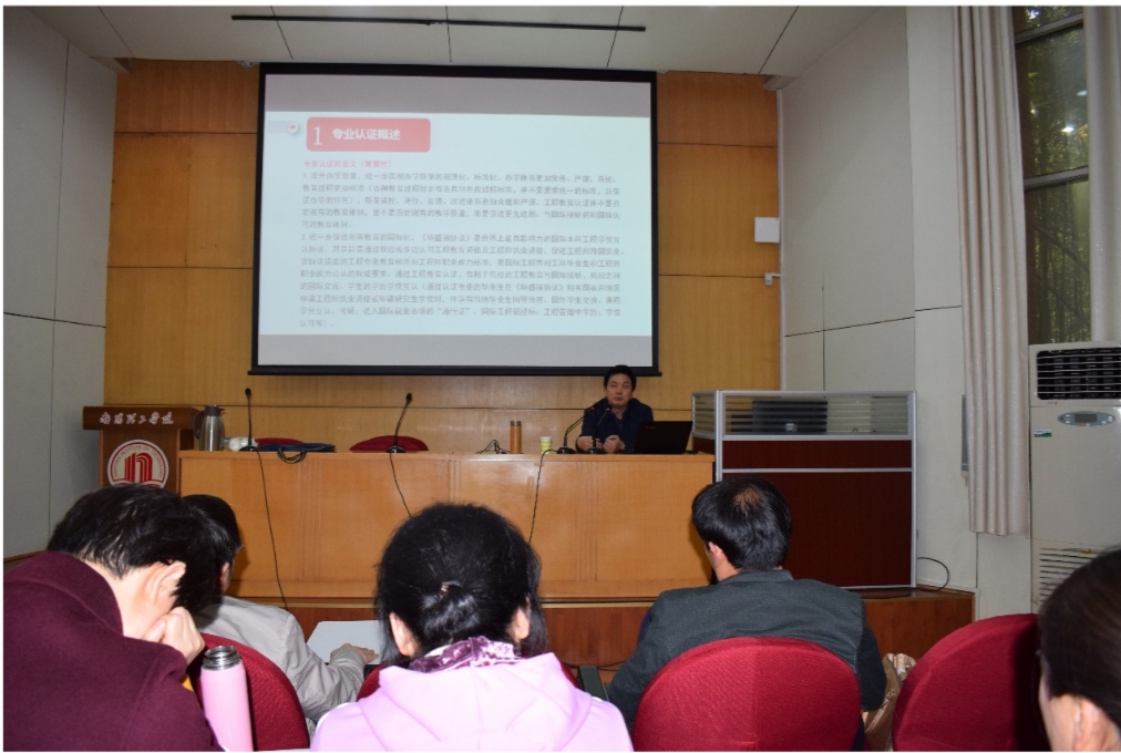 会议正式开始,程远兵教授就专业认证概述、专业认证程序、专业认证标准、专业认证申请书、专业培养方案和课程大纲等五个方面进行了详细讲解。尤其对培养目标、毕业要求、课程体系、达成度评价等方面做了详细解释。培训会历时近三个小时,会后,老师们就达成度评价等方面进行提问交流,收获颇丰。
