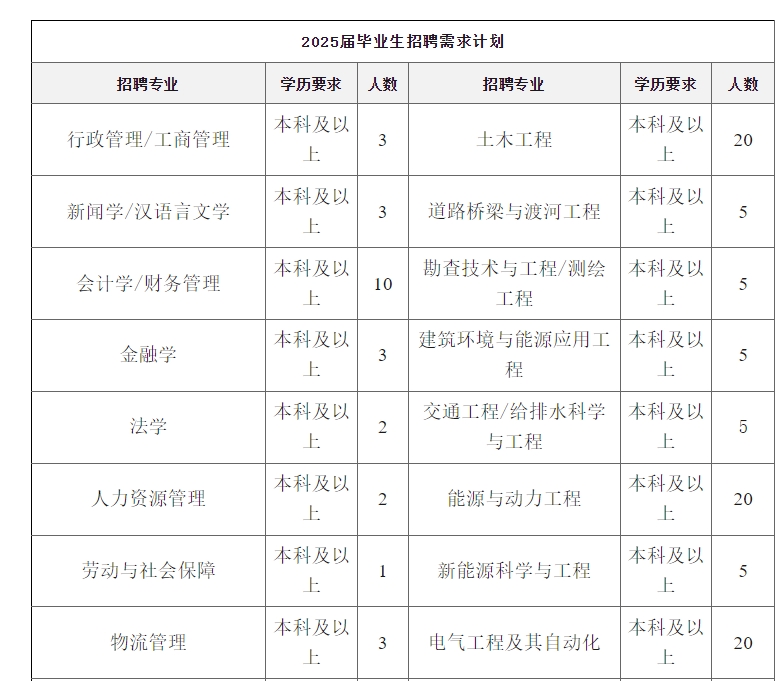 六、招聘专业