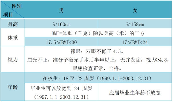 (注意:对视力的要求属于硬性标准,视力不合格的同学可自主选择相应矫正措施,矫正度数不得超过600度)