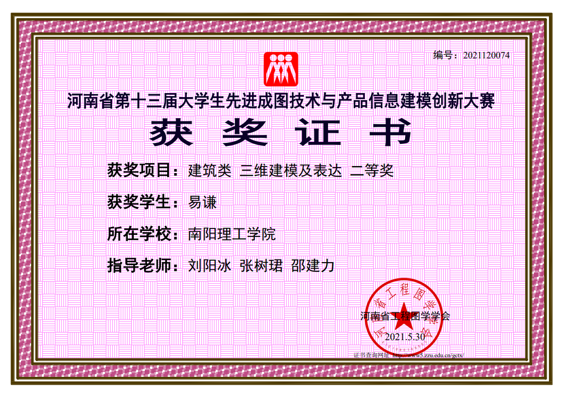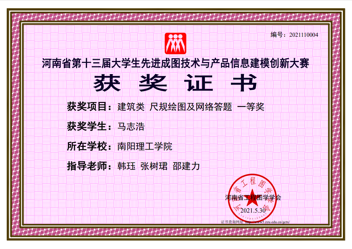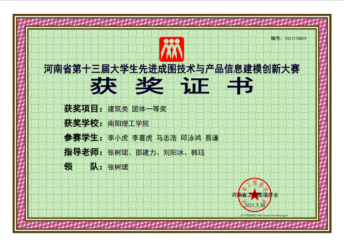 公司两支代表队在此次比赛中喜获团体一等奖、二等奖各一项。2018级土木工程专业马志浩同学喜获建筑类尺规绘图一等奖,2017级土木工程专业李喜虎、2018级土木工程专业曾诚等5名同学喜获建筑类尺规绘图二等奖,另有多名同学取得尺规绘图三等奖。来自2018级土木工程专业马志浩和马志浩喜获三维建模及表达二等奖,另有多名同学取得三维建模及表达三等奖。
